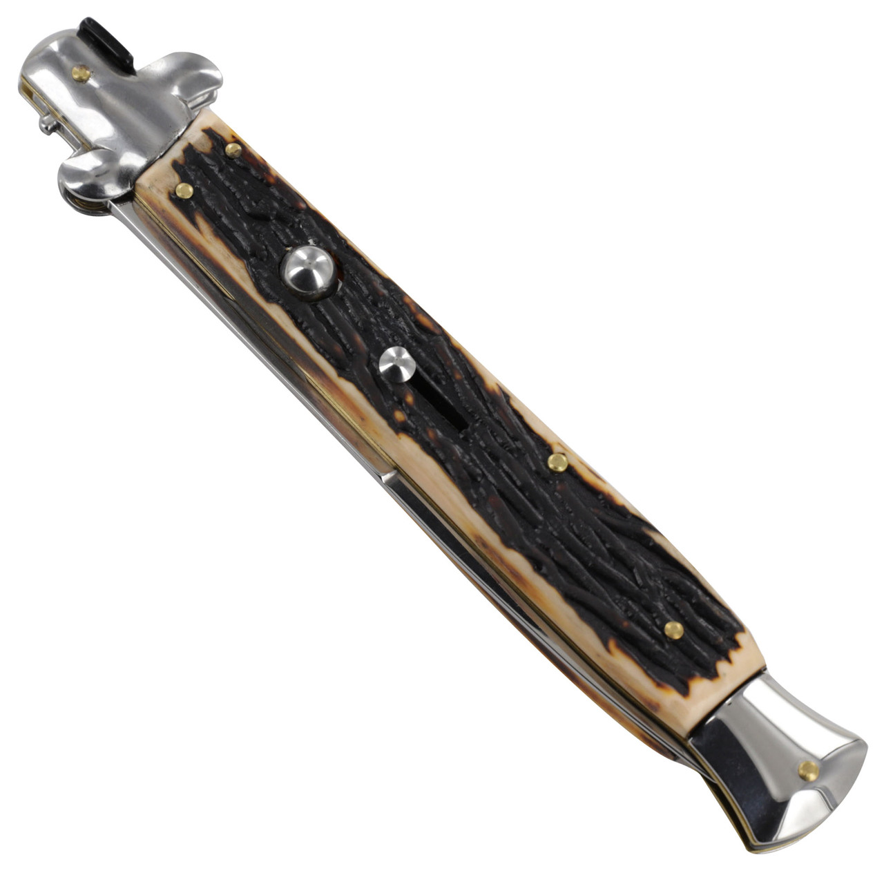 12.5" Faux Stag Switchblade Stiletto Automatic Knife Satin Bayo