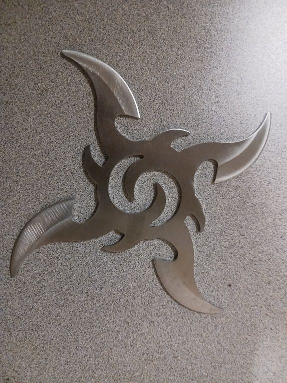 4 Point Fire Throwing Star with Sheath. This is old stock we found laying around. We only have a few pieces left. This star is 1.4 ounces and is 4 inches long 1045 surgical steel. It comes with snap case belt sheath.