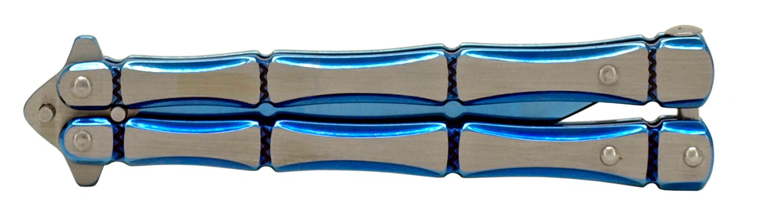 5" Blue Bones Heavy Butterfly Knife Clip Point Balisong. Blade Material 440 Stainless Steel Blade Type Clip Point Folding Action Butterfly Handle Construction Stainless Steel Features Safety Clip Blade Length 4" Handle Length 5" Overall Length 9"