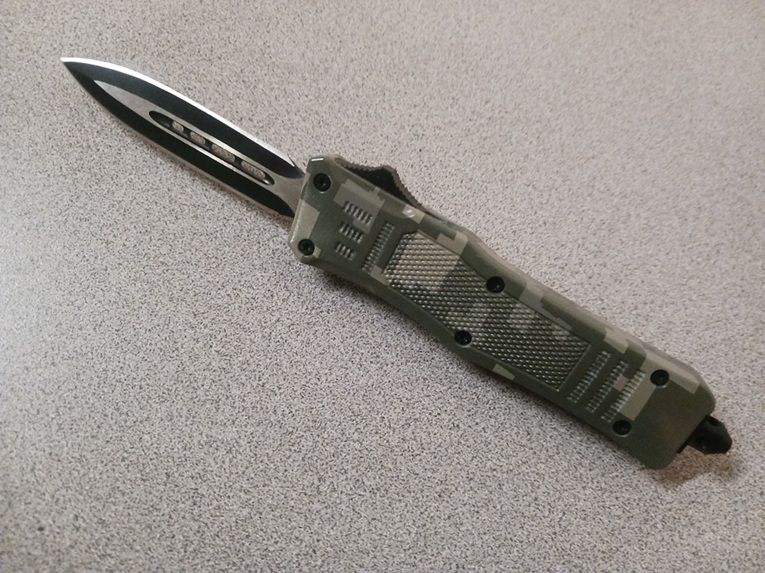 6.5" Delta Force Digital Camo D/A OTF Automatic Knife Dagger Point Two Tone Plain. 6.5 inches total length 2.5" 440 stainless steel blade. comes with pocket clip, glass breaker and a belt sheath. This is old stock we found laying around. Very limited stock.