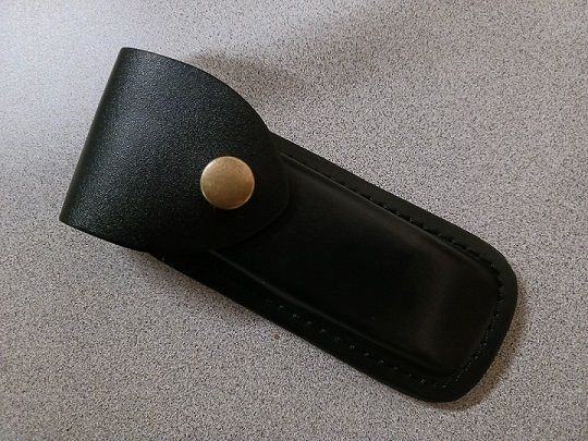 8.5" Automatic Knife Lock Back Switchblade. This Automatic Pocket Knife looks as sharp in style as its blade is sharp to the touch. It has a 3 3/4” sharp, 3Cr13 stainless steel clip point blade that can be deployed with the push of the brass button. The lockback pocket knife has black wooden handle scales, secured with brass pins and bookmarked by brass bolsters. The automatic knife is 8 1/2” in overall length and is 4.75” when closed. Comes with a belt sheath.