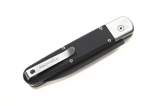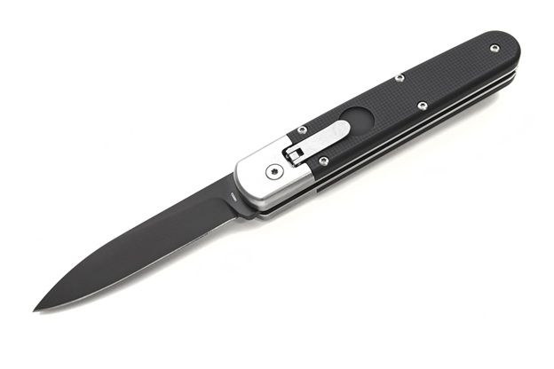 We are excited to present you the latest switchblade from the italian knifemaker company A.G.A Campolin the Baron Elite. This automatic knife is the modern evolution of the Baron build with the same leverlock mechanism like the successful "Zero". It has N690Co stainless steel drop point blade with black PVD coating and solid stonewashed AISI 420 steel liners and bolsters. The double spring gives faster action and guarantees longer durability where the inverted lever ensures quick opening action. The handle is made of black G-10 with a 3d texture for a better grip and comes with a stainless steel pocket clip. The springs are very easy to replace and the Baron Elite comes with an extra spring in the carbon paper box. This new Baron Elite leverlock is an exellent quality EDC. Overall length: 20cm - 7.9" Blade length: 8.5cm - 3.3" Weight: 190g - 6.7oz Blade material: N690Co Stainless Steel Handle material: G-10 Made in: Italy