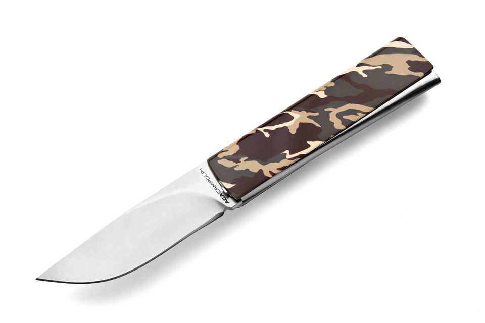 AGA Campolin Dragonfly Gravity Knife Mimetic Green Limited Edition. AGA CAMPOLIN has recently introduced an innovative knife, known as the Dragonfly, resulting from a collaboration with Master Ottonello. This knife combines elements of both the Gravity and Butterfly, resulting in a truly revolutionary design. Its versatility allows for comfortable use by both right and left-handed individuals. With a blend of elegance, practicality, and enjoyment, the Dragonfly adds significant value to the world of knives. We are excited to be the first to offer this extraordinary knife, enriching our selection with a unique and highly appreciated option. There are no limits, only your imagination guides game creation. Limited Edition 100 pcs Overall length: 17.2cm - 6.77" Blade length: 7.5cm - 2.95" Blade thickness: 3mm - 0.11" Weight: 80g - 2.82oz Blade material: 440C Handle material: Steel