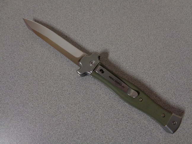 ZERO is a modern stiletto with leverlock mechanism. It has a N690Co stainless steel tanto blade with satin finish and solid steel AISI 430 glass bead blasted bolster. Double spring gives faster action and guarantees longer durability. Inverted lever for a quick opening action. The green G-10 handle with a 3d texture ensures better grip. The stainless steel pocket clip can be easily removed and substitute with a little steel shield. Overall length: 22cm - 8,7" Blade length: 10cm - 4" Blade thickness: 3.5mm - 0.14" Weight: 170g - 6oz Blade material: N690Co Stainless Steel Handle material: G-10 Made in: Italy