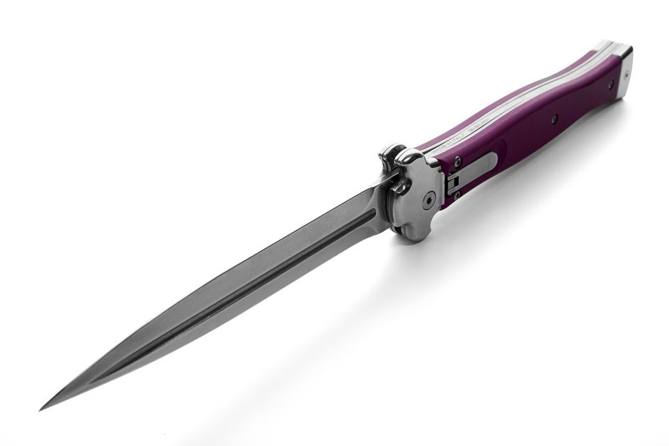 AGA Campolin Zero + Purple Aluminum Leverlock Automatic Knife Dagger Polished Plain