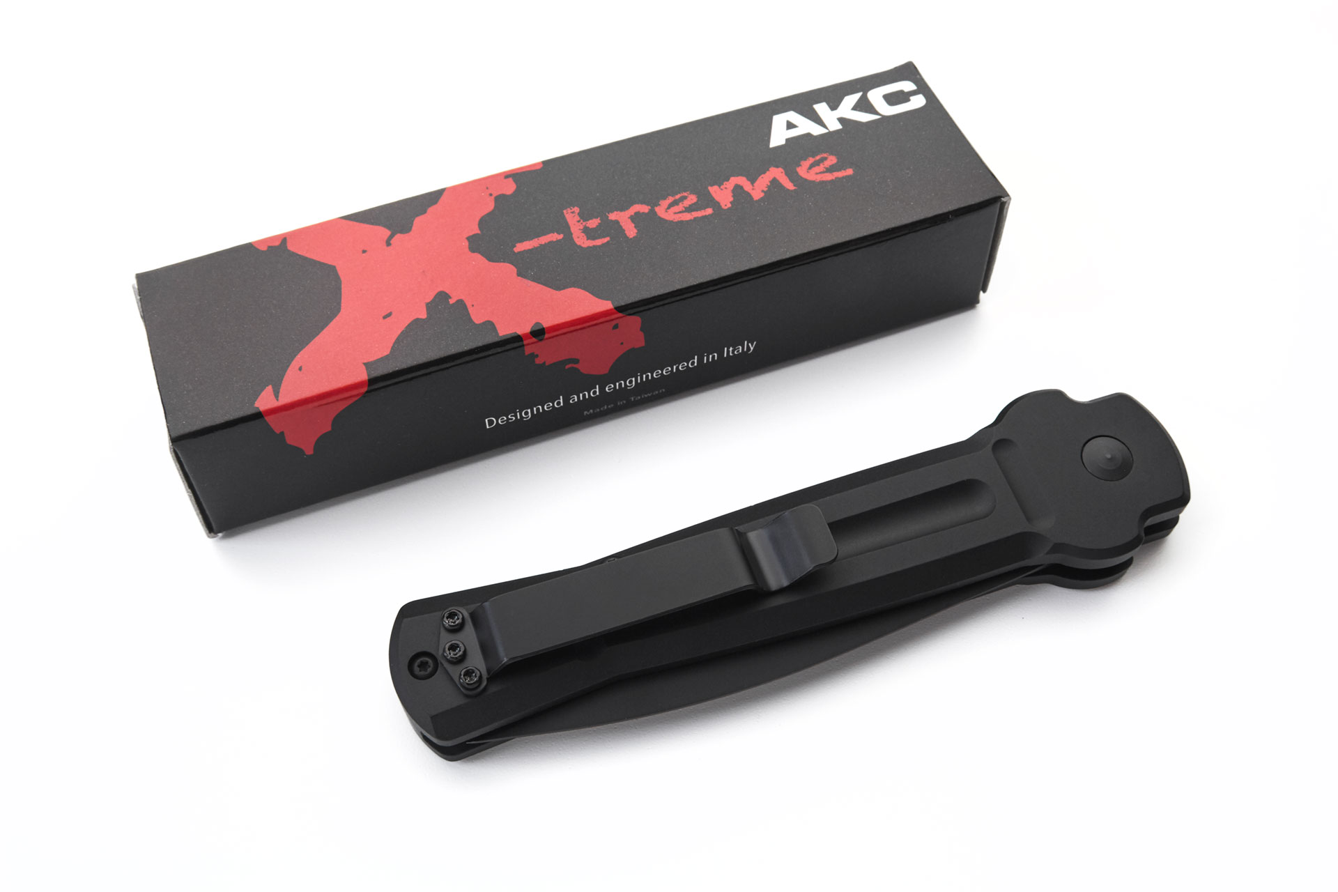 The AKC X-TREME made with modern materials and an aggressive italian design. This new automatic model "ACE" features a CNC worked 6061-T6 aircraft aluminium handle in black. The blade on this switchblade is made of AUS-8 japanese steel with a HRC of 58-59 and has a PVD coated finish. It includes a tip up clip for the belt. The "ACE" from AKC X-TREME is very nice and light EDC. Overall Length: 21.5cm - 8.5" Blade Length: 9.5cm - 3.7" Weight: 105gr - 3.7ozBlade Material: AUS-8 Japanese Steel Handle Material: Aluminium Made in: Taiwan