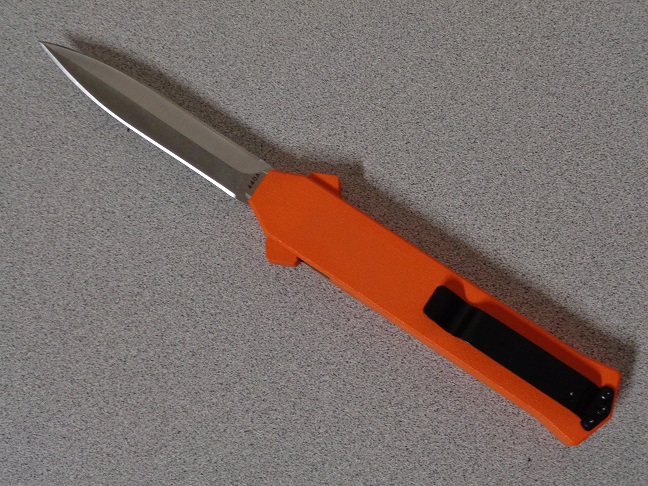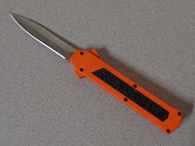 AKC F-16 Orange Grip D/A OTF Automatic Knife Satin Dagger