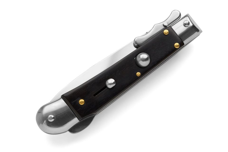 AKC World Medici 7.3" Swinguard Automatic Knife Dagger Ebony Wood. Medici is a new swinguard from AKC World is a new line of italian knives designed in Italy. These are excellent quality knives with Italian style. Very nice shape and good mechanism. Nice for any collection but also as fancy pocket knife. Price quality range is very good. Overall lenght: 18.5cm – 7.3" Blade Lenght: 7 cm – 2.76" Blade Thickness: 0,3cm – 0,11" Weight: 96 gr-3.4oz Blade Material: AISI 420 stainless steel Handle Material: Ebony Frame material: AISI 420 stainless steel