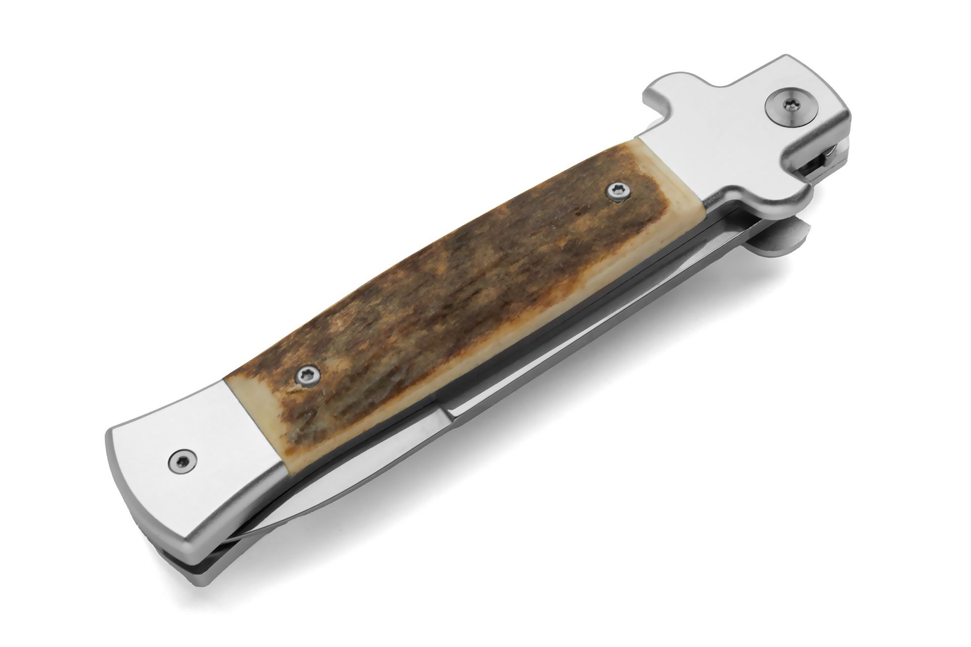 AKC X-Treme Shadow 9" Stag Horn Stiletto Automatic Knife 440c Polished Bayo