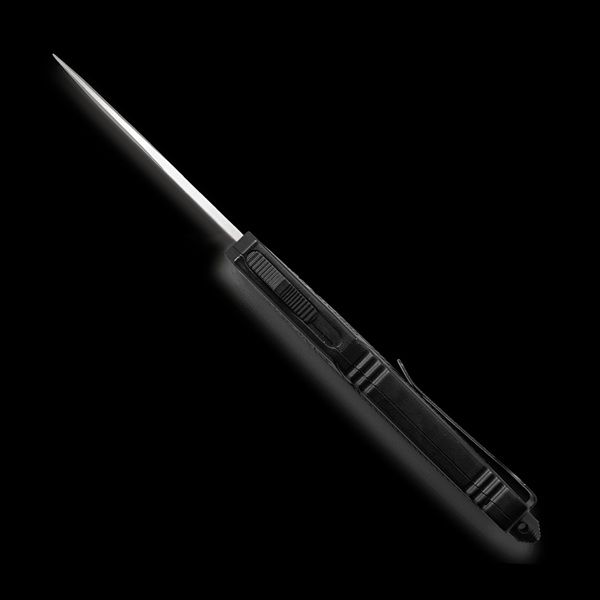 CobraTec CTK-1 D/A OTF Auto, 3.75" D2 Drop Blade, Aluminum Handle Black. CobraTec Black CTK-1 double action OTF Knife. The CTK-1 is one of the best out the front knife (OTF) for general use and a great choice as your everyday carry. The handle is designed from high-grade aluminum alloy and features a D2 steel blade. The knife is ambidextrous as the pocket clip can be switched to either side of the handle, depending on your preference. This OTF knife features a pocket clip, a glass breaker for emergencies and includes a nylon sheath. All CobraTec OTF knives are backed by our LIFETIME WARRANTY. 9 ounces Dual Action OTF 3.75 inch D2 Steel Blade 5.75 inch high-grade aluminum Alloy Handle 9.5 inches in total length with Glass Breaker
