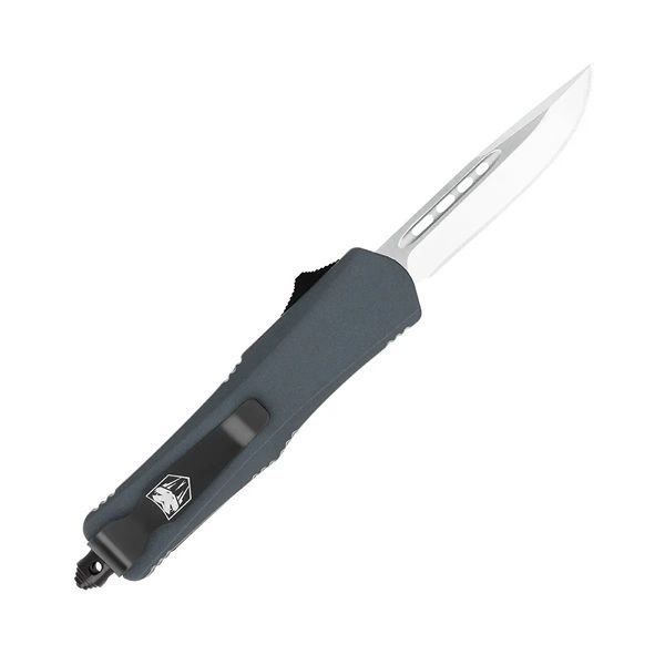 CobraTec FS-3 Gray Auto, 2.75" D2 Drop Blade, Cerakote Handle. Our small FS-3 Grey starts from a high-grade aluminum alloy handle and features a D2 steel blade. All knives are dual action (blade deployment and retraction are powered by pushing or pulling the same control switch). The knife is ambidextrous as the pocket clip can be switched to either side allowing for RH and LH use. This knife features a pocket clip, a glass breaker for emergencies and includes a nylon sheath. All CobraTec Knives are backed by our LIFETIME WARRANTY. 4.5 ounces Dual Action OTF 2.75 inch D2 Steel Blade 4.25 inch high-grade aluminum alloy handle 7 inches in total length with glass breaker