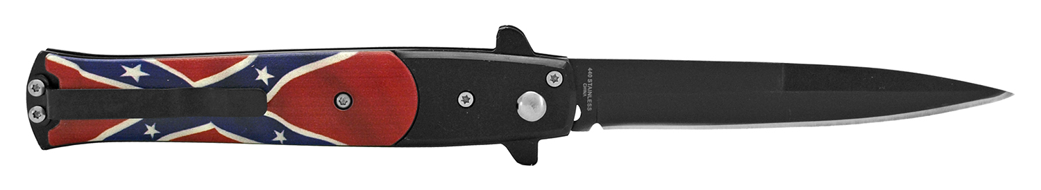 Confederate Flag 8.75" Stiletto Automatic Knife Black Bayo
