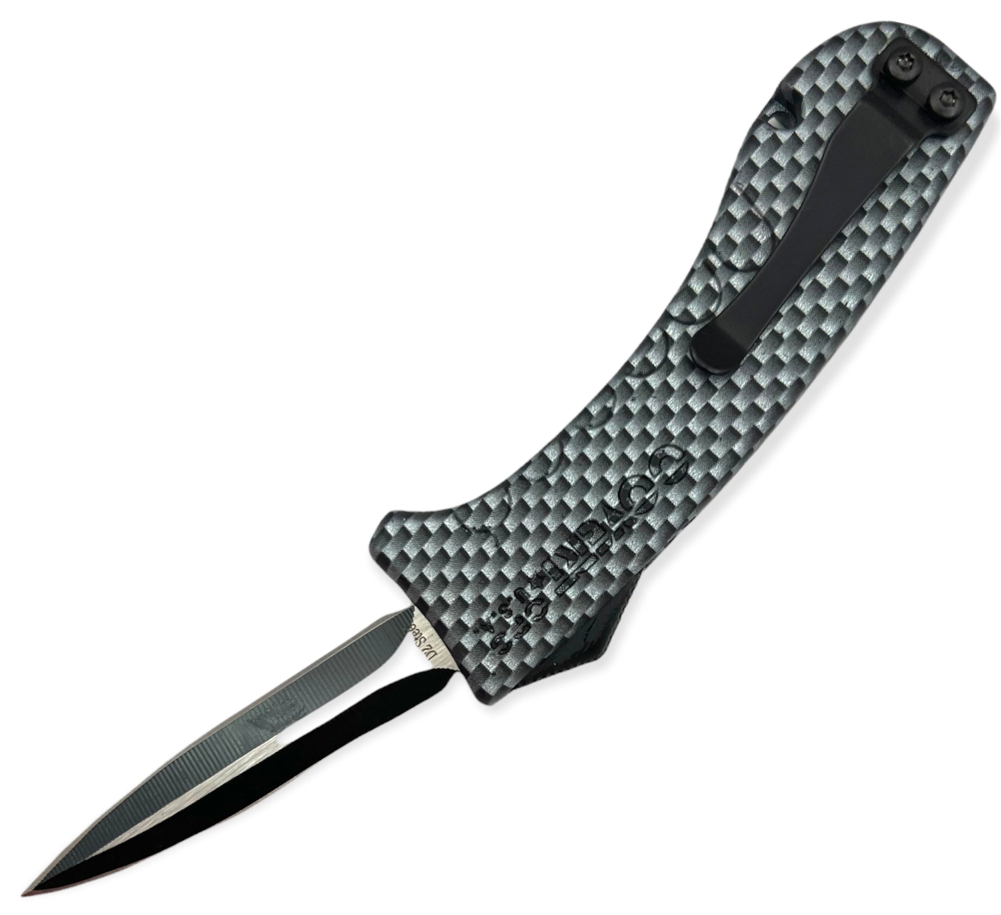 Covert Ops Mini D/A OTF Automatic Knife Carbon Fiber Karambit. Lifted traction ridges 5.5 inch overall length 2.0 Blade length D2 steel Amazing value Belt clip