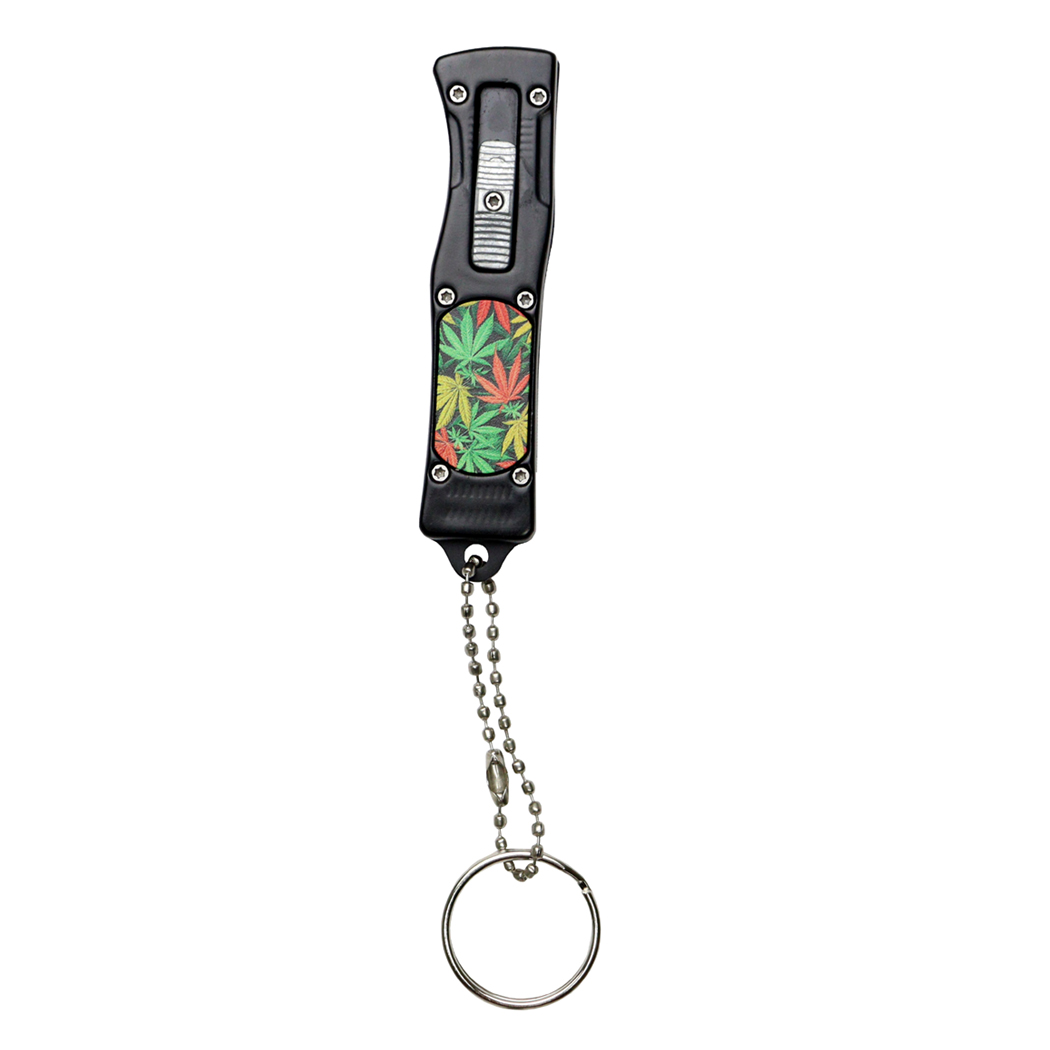 Defender Extreme 5" Mini D/A OTF Automatic Knife Key Chain Marijuana. Key Chain Knife Overall Length 5" Blade Length 2" Handle Length 3" Leaf Design Handle Stainless Steel Blade Keychain Ring
