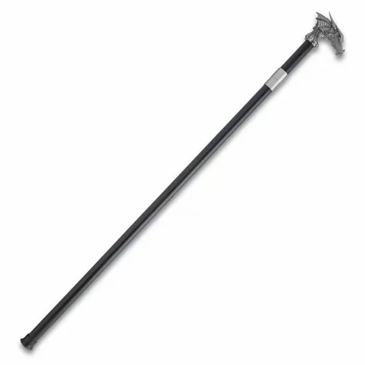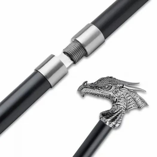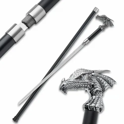 Unveil a world of mystique and elegance with our Dragon’s Lair Sword Cane. The 39 1/2 inch sword cane has a 22 1/2 inch satin-finished blade that exudes sophistication, offering both an eye-catching sheen and durability. It also includes a black scabbard, which enhances the overall aesthetic and completes the look of this remarkable accessory. Majestic 39 1/2-inch Dragon Sword Cane for those who appreciate style and functionality. 22 1/2 inch satin-finished blade offers durability and an eye-catching sheen. High-quality fittings and handle with intricate dragon motifs for a comfortable grip. Includes a black-painted iron sheath for blade protection and added style.