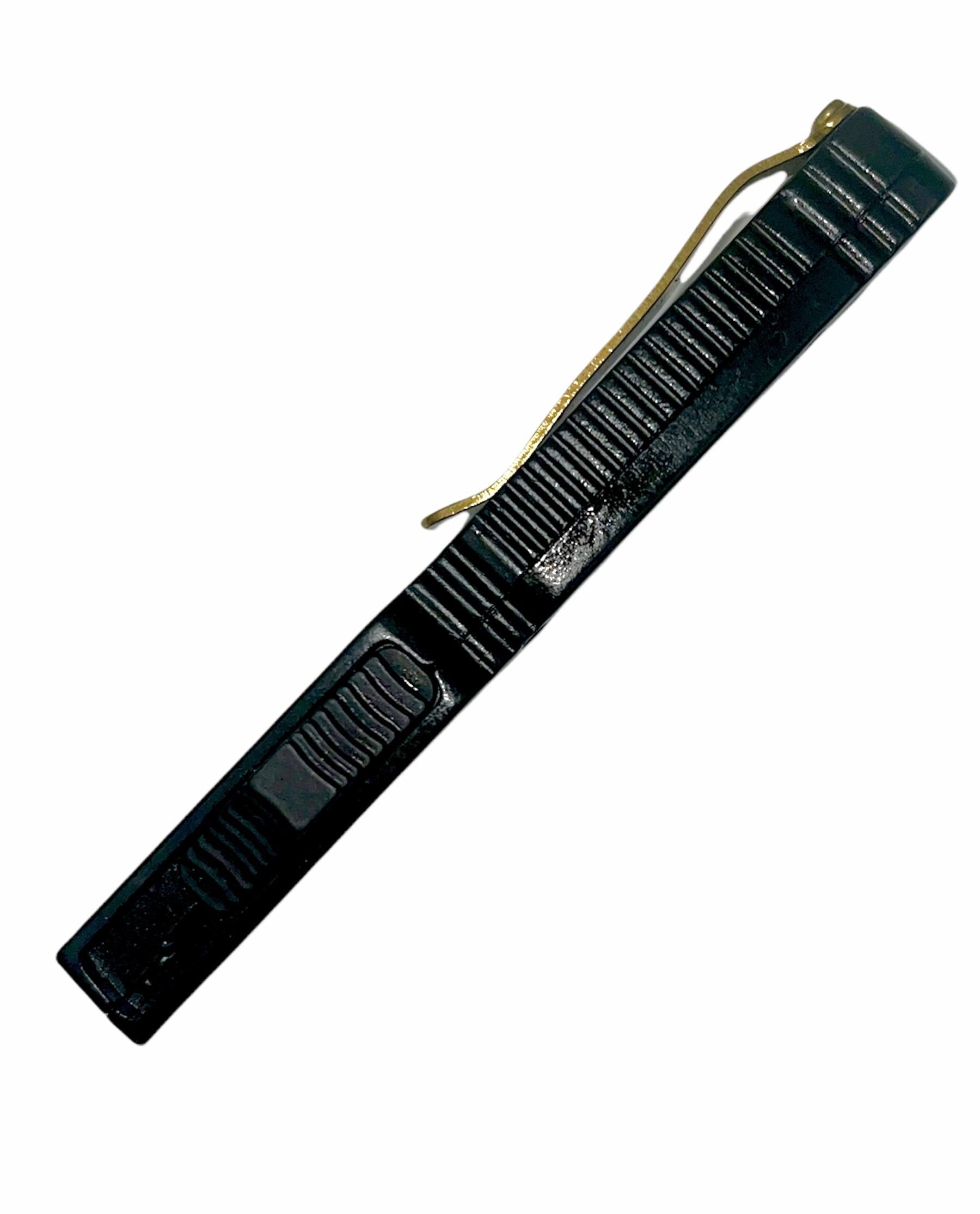 Firecracker 5" Black D/A OTF Automatic Knife Gold Dagger. The handle length is 3.125 inches while the overall length of the knife is 5.125 inches. The weight is 1 ounce, so this is a solid and lightweight beauty of a knife. The handle width is 9 millimeters wide while the blade width is 2 millimeters.