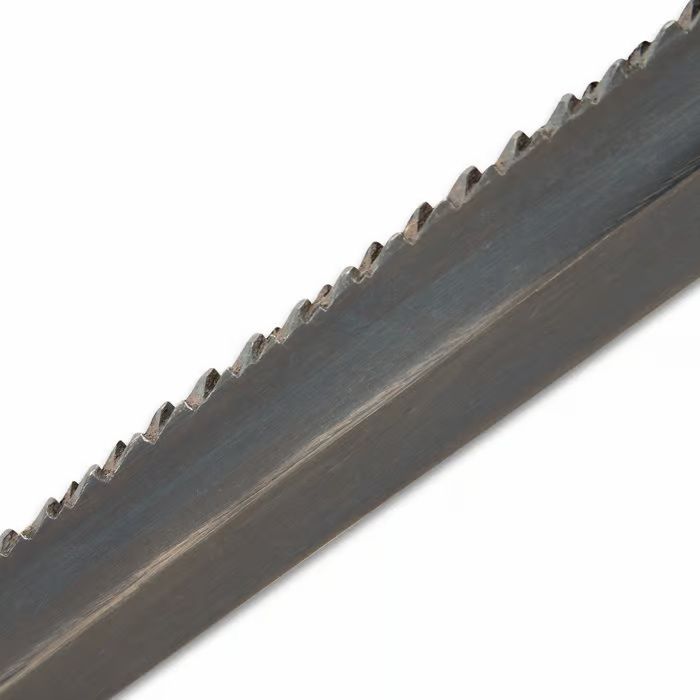German M98 05 Butcher Sawback Bayonet. When you’re looking for high-quality, accurate militaria reproductions to add to your collection, this is the only place to be. The German M98 05 Butcher Sawback Bayonet was carried by German soldiers during WWI and was notorious for the vicious injury it caused when used. However, the aggressive sawback design was intended as a tool not necessarily as a weapon. Our authentic reproduction has a 14” high carbon iron blade with a toothy sawback and the wooden handle scales are scored. The 19 1/4” overall length bayonet slides securely into an 18-gauge, black metal scabbard. When you’re looking for high-quality, accurate militaria reproductions to add to your collection, this is the only place to be Our authentic reproduction has a 14” high carbon iron blade with a toothy sawback and the wooden handle scales are scored The 19 1/4” overall length bayonet slides securely into an 18-gauge, black metal scabbard
