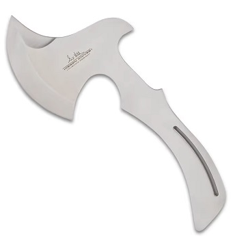 As a member of the International Knife Throwing Hall of Fame, Gil Hibben knows throwing axes and what design elements are necessary for the perfect throw. Perfect your axe-throwing skills with the Hibben Three-Piece Master Throwing Axe Set. Each 10” overall axe is one-piece of tempered, 3Cr13 stainless steel with a 4 1/4”, upswept edge that’s razor-sharp and penetrating. It has a curved-grip design that guides it into the same consistent and accurate release each time that it’s thrown. The blades can be protected in the included, tough nylon sheath, which is built to hold the heads of the entire set.