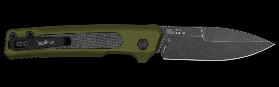 Kershaw Launch 22 Automatic Knife OD Green Micarta (3.45" BW MagnaCut). A powerhouse in the Launch series, the Launch 22 combines a spear point blade, enhanced with a wide flat grind and bayonet-inspired style, with an OD green anodized aluminum handle. MagnaCut steel in a BlackWash finish delivers exceptional performance and durability, while jimping on the spine adds control. Black canvas Micarta inserts on both handles boost grip, and larger hardware emphasizes overbuilt construction. The thicker blade stock adds strength for demanding tasks. Open this Kershaw automatic lightning fast at the push of a button. Rugged, fast, and built in the USA, the Launch 22 delivers bayonet-inspired performance in a snappy automatic ready for any mission. USA-made automatic knife with spear point blade and bayonet-inspired styling MagnaCut blade steel with BlackWash™ finish for durability and corrosion resistance; jimping on spine for control OD green anodized aluminum handle with black canvas Micarta on both sides for enhanced grip Low-profile push button helps prevent accidental deployment; deep-carry pocketclip is easily reversible for left/right carry. Edition Engravable Use Work, Tactical Type Automatic, Folder Style Pocketknife Designer Kershaw Originals Blade Style Spear Point, single edge Blade Edge Plain Opening Action Automatic Opens With Push button Lock Type Push-button lock Pocketclip Reversible deep-carry (right/left, tip-up) Handle Color OD Green Hardware Black-oxide handle screws, black-oxide pivot, black Cerakote pocket clip, black-oxide pocket clip screws Country of Origin USA: Design, Prototype, Quality Control, Manufacture Warranty Limited Lifetime Warranty. Blade Length 3.45 in. (8.8 cm) Blade Material CPM MagnaCut HRC 62-64 Blade Finish/Coating BlackWash™ coating Blade Thickness 0.16 in. (4.1 mm) Closed Length 4.75 in. (12.1 cm) Handle Material 6061-T6 aluminum, micarta inserts Handle Finish/Coating OD green anodized Handle Thickness 0.51 in. (1.3 cm) Overall Length 8.2 in. (20.8 cm) Weight 3.7 oz. (105 g)