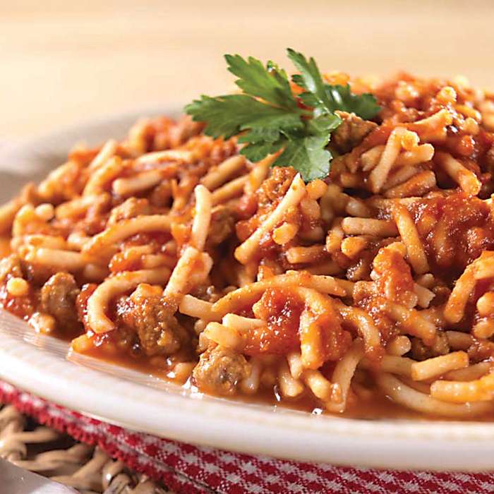 Feed your whole family plus the neighbors with this delicious spaghetti and meat sauce meal from Mountain House. This single can of spaghetti provides you with 10 full servings of savory spaghetti in a delectable marinara meat sauce. Nothing says comfort food like some good old-fashioned classic spaghetti. This savory sauce has a home-cooked flavor that will take you back to your grandma's table with every bite. Simply follow the package instructions, and in a few minutes you will have a wholesome, hearty dinner! Best of all, you don't have to worry with a ton of messy pots, pans or cooking utensils. It has a suggested shelf life of 25 years, making it great for camping, outdoors and bug-out bags. Easy to prepare 10 full servings 25-year shelf life Wholesome & tasty
