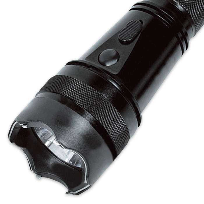 Night Watchman 2 Million Volt Black Stun Gun Flashlight CREE LED. Among most powerful civilian stun guns available 2 million volts of attacker-stopping power Ultrabright CREE XPE LED flashlight Three light modes - high, low, strobe Durable stainless steel outer casing Includes battery, charger, wrist strap 6 3/4" long x 1 1/4" diameter (at widest point)