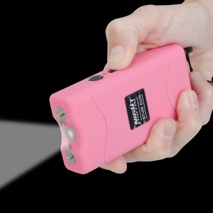 Night Watchman's 2 1/2 Million Volt Pink Stun Gun will jolt any assailant who dares to accost you! With 2 1/2 million shocking volts of electricity behind it, this stun gun means serious business. It also features an LED flashlight, and it's the perfect size to carry discreetly in your pocket. 2,500,000v of electricity Dual stunning probes Built-in LED flashlight Retractable wall plug-in Wrist lanyard safety pin