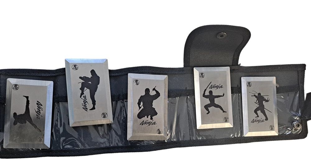 NINJA Silver 5 piece Throwing Cards with Nylon Case