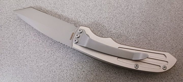 Smith & Wesson Extreme Ops Champagne Automatic Knife 2.5" Tanto Serrated SW40TS. Nice contour and weight, will fit perfectly in your hand. Comes with a pocket clip. Blade length 2.5" 7Cr17MoV Total length 6 Inches