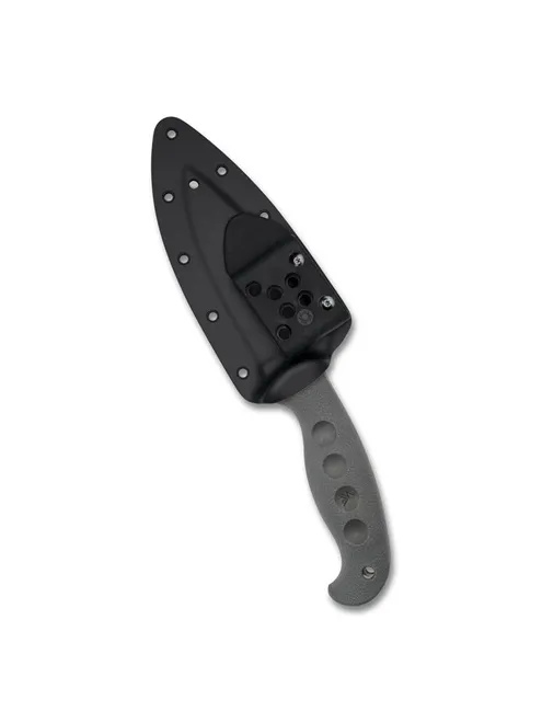 Spyderco Temperance Sprint Run Serrated Cru Wear Blade Gray FRN FB05SGY. Designed by Spyderco co-founder Sal Glesser, the Temperance™ was one of our earliest fixed-blade models. Now this classic design is back as a limited-edition Sprint Run®, showcasing a gray-colored fiberglass-reinforced-nylon (FRN) handle and a full-flat-ground blade crafted from CPM® CRU-WEAR® tool steel. Specially formulated to offer both superior wear resistance and toughness, CRU-WEAR’s advanced alloy composition is further enhanced by the Crucible Particle Metallurgy (CPM) process to ensure an ultra-fine, extremely homogeneous grain structure. Faithful to the original, the knife’s ergonomic handle is injection molded directly onto the tang of the blade and features a series of bilateral “dimples” to enhance its texture and provide pivot points for grip-change maneuvers. This remarkable resurrection of the Temperance is available in both PlainEdge™ and fully serrated SpyderEdge™ configurations. Both include a custom-molded Boltaron® sheath with a versatile G-Clip™ attachment that supports both belt and inside-the-waistband carry. Technical Specifications Overall Length: 9.42in 239mm Closed Length: in mm Blade Thickness: .157in 4mm Tip Carry Position: N/A Sheath: Boltaron Blade Length: 4.46in 113mm Edge Length: 4.15in 105mm Handle Material: FRN Lock Type: N/A Origin: Japan Steel: CPM® Cru-Wear® Knife Weight: 5.4oz 153g Clip Position: N/A Grind: Full-Flat